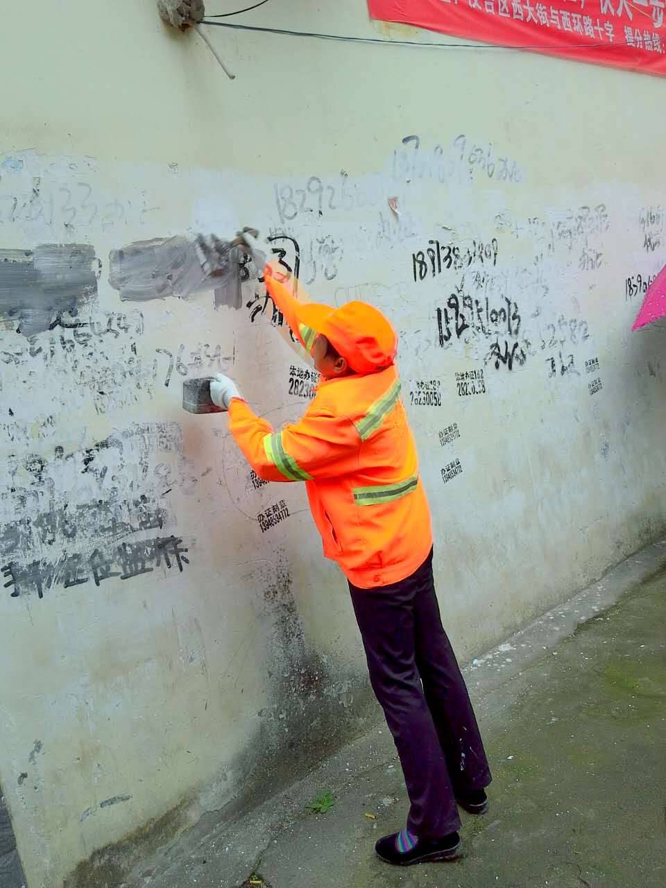 漢中東方家政結(jié)合劃分的區(qū)域特點,逐街逐路對轄區(qū)墻壁、線桿、廣告招牌、地面、行道樹上的野廣告、亂貼亂畫進行了清理。