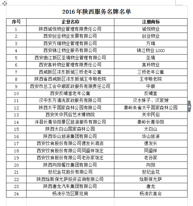 【東方家政】2016年陜西服務(wù)名牌名單